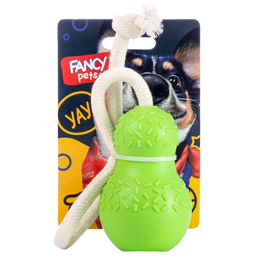 • 3 в 1 Игрушка включает в себя бомбочку и прочный канат, что позволяет использовать её для жевания, бросков и игр на перетягивание.