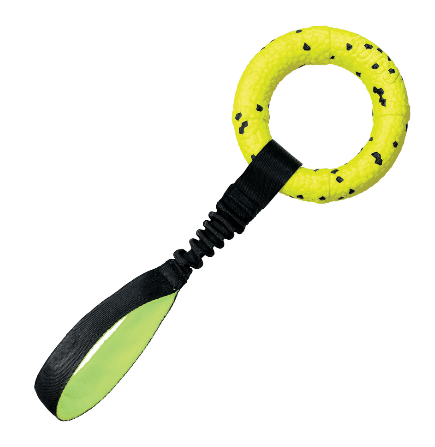 Эта прочная и лёгкая игрушка разработана для активных игр и тренировок с вашими питомцами. Кольцо из плотного вспененного материала мягко амортизирует при броске и безопасно для зубов, а эластичный участок между кольцом и ручкой снижает рывки при игре в перетягивание. Удобная нейлоновая петля с мягкой подкладкой обеспечивает надёжный захват и комфорт человеку во время длительных сессий. Игрушка хорошо видна благодаря яркому цвету и подходит для игр апорт на суше и в воде.